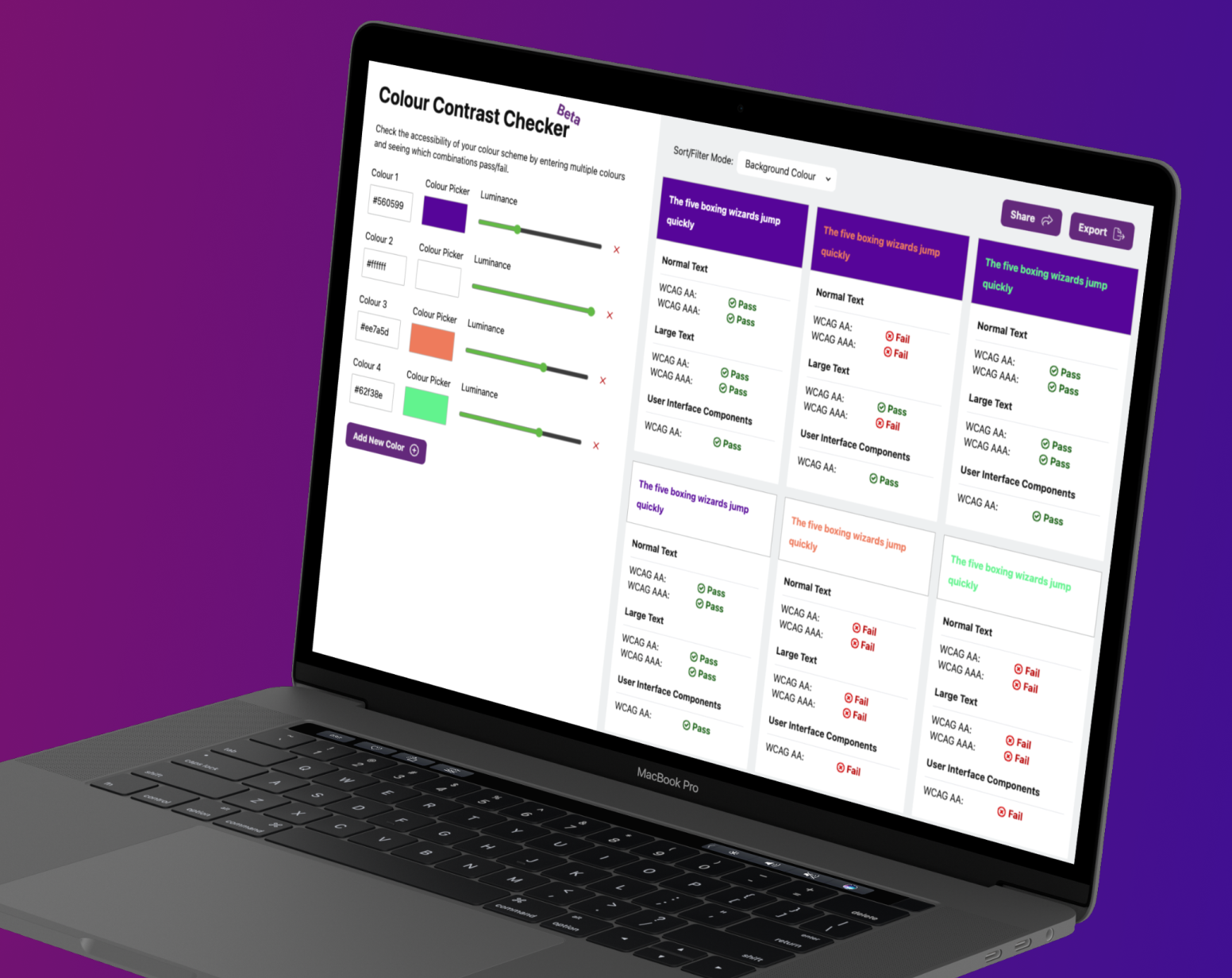 I had put together a design for what I wanted the contrast checker to look like, and then I got talking to Zoe Aubert at one of my Freelancer meetups and showed her my designs. Turns out she had been working on something that used the same logic. Within a couple of weeks we had a working beta, which we’ve now shared with you. We launched in May 2024.